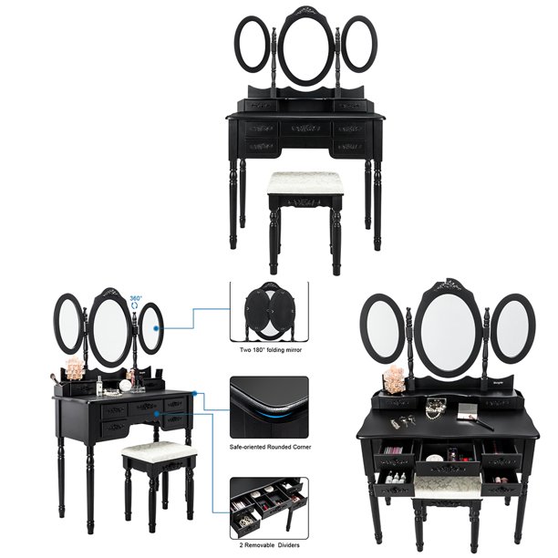 Foldable 3 Mirrors with 7 Drawers Dressing Table White ... from d1f7geppf3ca7.cloudfront.net The stools can be made of different materials like hard plastic, solid wood, engineered wood and so on. Woltu dressing table cosmetic table white with dressing stool makeup mirror foldable vanity high gloss table top bedroom dresser set 2 storage compartments for ample storage mb6047ws. To celebrate the art of table design and setting for outdoors, ceo and creative director seb bishop has shared his top tips for dressing a table, right in time for alfresco dining with friends. Vanity table in art glass, parchment and blue velvet attributed to pietro chiesa. The dressing table has been revisited in a modern key to fit into. Great savings & free delivery / collection on many items. Get contact details & address of companies manufacturing and supplying designer dressing table, modern dressing table across india. Dressing tables is a piece of furniture entirely dedicated to personal care and is usually included in the furnishing of the sleeping area.
